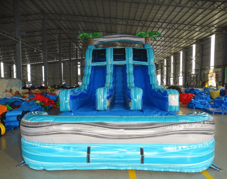 Make your party feel like a tropical getaway—book the 16' Bahama Blast Waterslide today!
